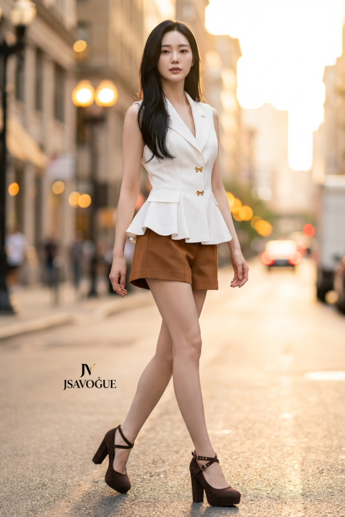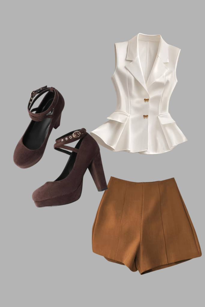 The pearl-handle cream mini bag completes the look with the softest contrast — breaking the monochrome just enough to add dimension and that signature romantic touch. Structured, chic, and delicate all at once — just like the woman carrying it.
